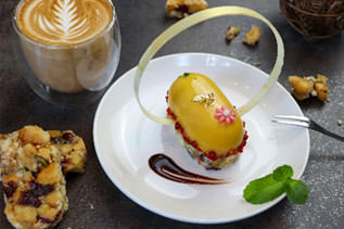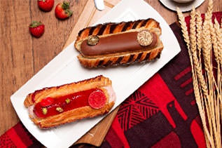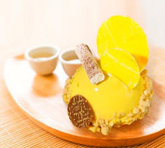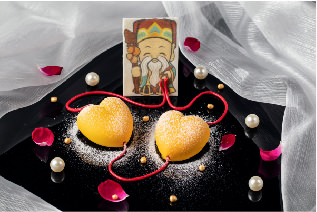 台南大員皇冠假日酒店 【月老賜緣雙心結】 聖母廟月老降臨,撒下緣粉賜良緣,牽起兩顆赤誠的心,願有情人終成眷屬。夏日當令芒果最鮮甜,選用愛文芒果製成的雙心慕斯,內餡包裹綜合莓果餡,酸甜綿滑的口感,就像戀愛般的滋味,令人回味再三。 浪漫甜心價│每款150元