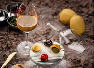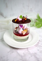 台南大億麗緻酒店 藏愛花園甜點杯 牽繫姻緣的月老公公讓追尋愛情的男女,沉浸於浪漫的藏愛花園,此甜點以香草奶油慕斯疊合覆盆子淋面,點綴上覆盆子香堤、季節果丁、穀物及食用花,於透明杯中宛如可愛的小花園,杯頂蓋上搭配紅櫻桃醬的巧克力脆餅,品嚐時敲破脆餅,與多種內餡一起品嚐,豐富的口感宛如戀愛般幸福滋味。 浪漫甜心價│每杯180元+10%(限內用)